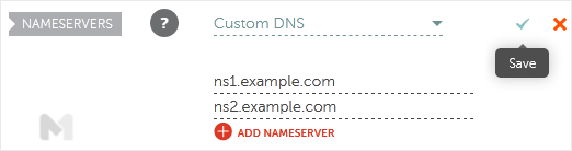 4. Scroll down to the Nameservers option and select Custom DNS from the drop-down menu.